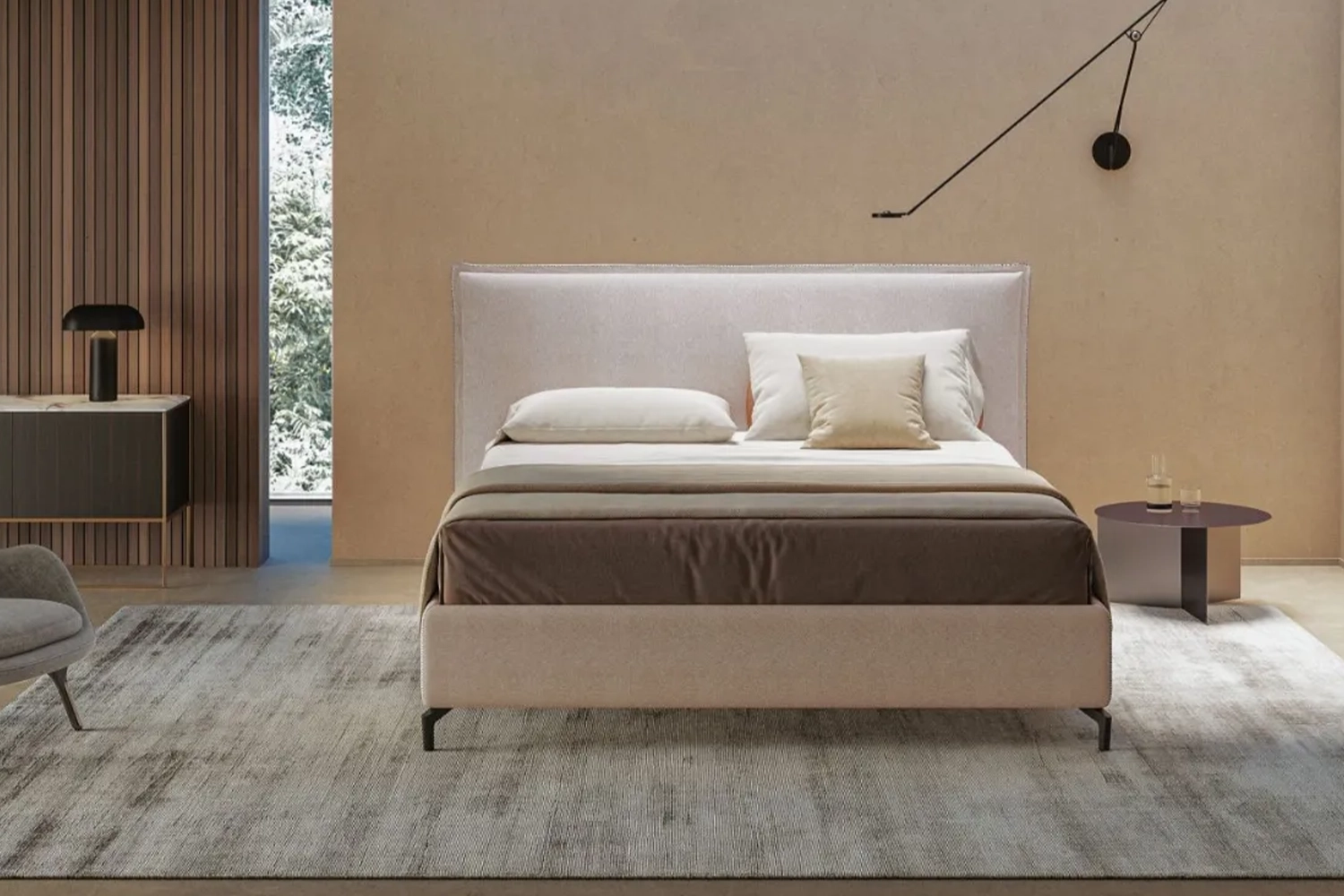 Scopri il letto Helene, un raffinato modello imbottito romantico con testiera a volant che unisce fascino classico e linee moderne. Impreziosito da finiture sartoriali e disponibile con box contenitore, è perfetto per chi cerca un design leggiadro e funzionale.