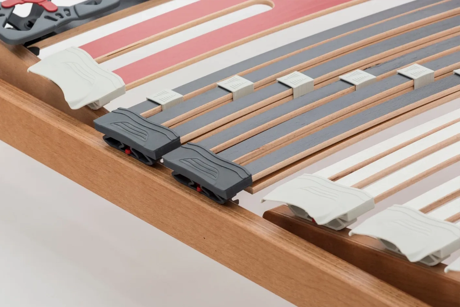 Speciali doghe da 25 mm: il piano di riposo dotato di speciali doghe da 25 mm di larghezza, particolarmente flessibili, seguono in maniera ergonomica le forme del corpo, conformandosi puntualmente alle diverse posizioni assunte durante il riposo.